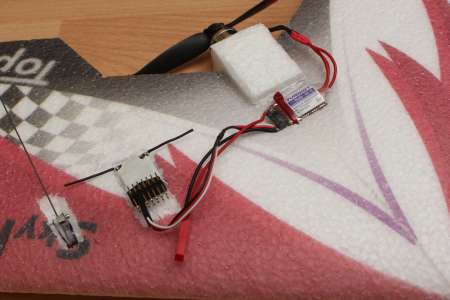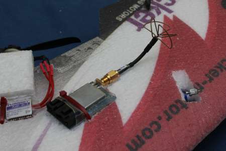 Da ich den Skyfighter primär als FPV Spassflieger einsetzen werde konnte auch direkt der 5.8 Ghz Video sender drauf. Zudem dient er dem Schwerpunktausgleich.