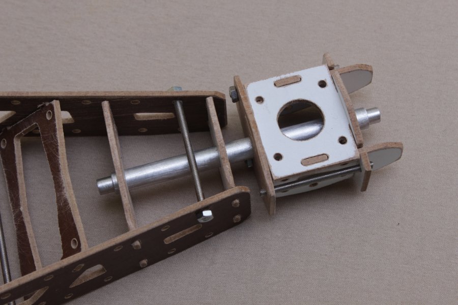 Von beiden Seiten kommen dann Muttern auf die Stangen. Damit sich das Ganze beim festziehen nicht verbiegt kommen auf einige Gewindestangen Alurohrstücke. Innendruchmesser mindestens 3mm.