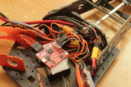 Dann alles zusammen in das Frame rein. Den Turnigy 9x Receiver hab ich direkt under die FC geklemmt.