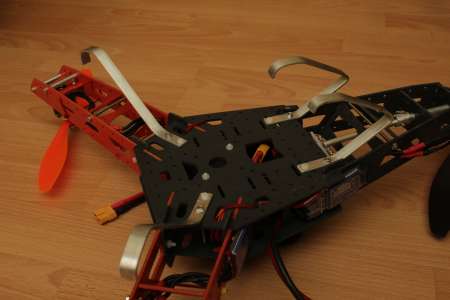 Dabei hab ich wieder auf die altbewährten Alustangen zurückgegriffen. Dadurch, dass die Landebeine direkt an der Centerplate angeschraubt sind, werden die empfindlicheren Arme beim härteren Landen geschützt.