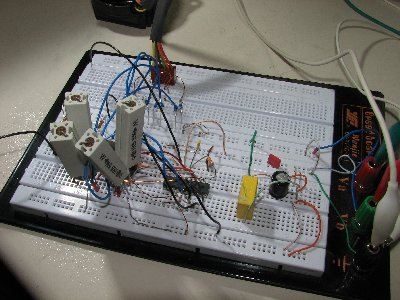 Hier mein allererster Testaufbau auf nem Breadboard. Sieht weitaus wilder aus als es ist.
