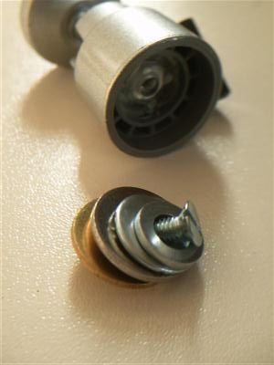 Anstelle der kurzen Schraube kommt nun eine etwas längere.
