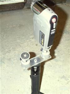 Da ich nicht so lange auf ein Stativ mit 1/4" Gewinde warten wollte, baute ich eine kleine Konstruktion mit metrischen Gewinden. Diese lassen sich nicht vollständig in die Kameras schrauben, halten aber fürs erste.