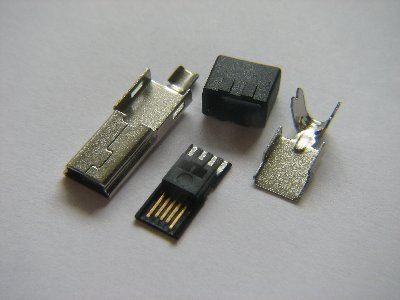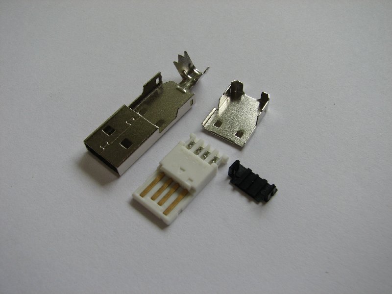 Dafür kaufte ich mir zwei mini-USB Stecker, zwei Knopfzellenhalterungen, und zwei USB-A Stecker.