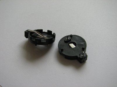 In die Knopfzellenhalterungen kamen jeweils CR2032 (Aus alten Mainboards) um etwa 5V zusammenzubekommen.