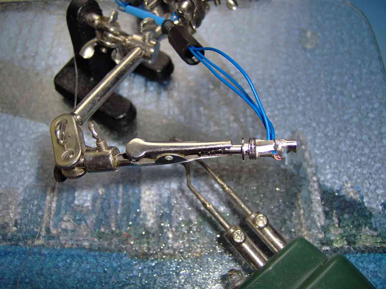 Die ersten Kabel befestigt (vorerst festgedreht also nicht gelötet):