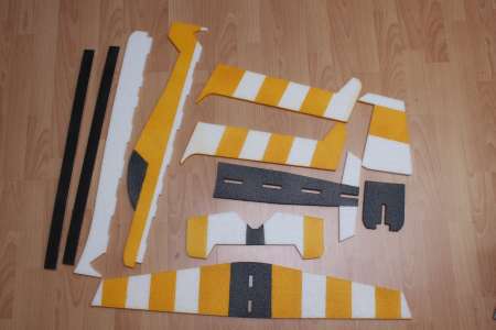 Zuerst musste ich alle Teile aus den EPP Platten lösen. Entgegen der Anleitung hab ich mich dazu entschieden, das EPP vor dem Zusammenbau zu Lackieren. Das Lackieren mit handelsüblichem Sprühlack war überraschend einfach, lediglich das Abkleben war etwas mühselig, da normales Klebeband nicht so recht auf dem EPP halten will.