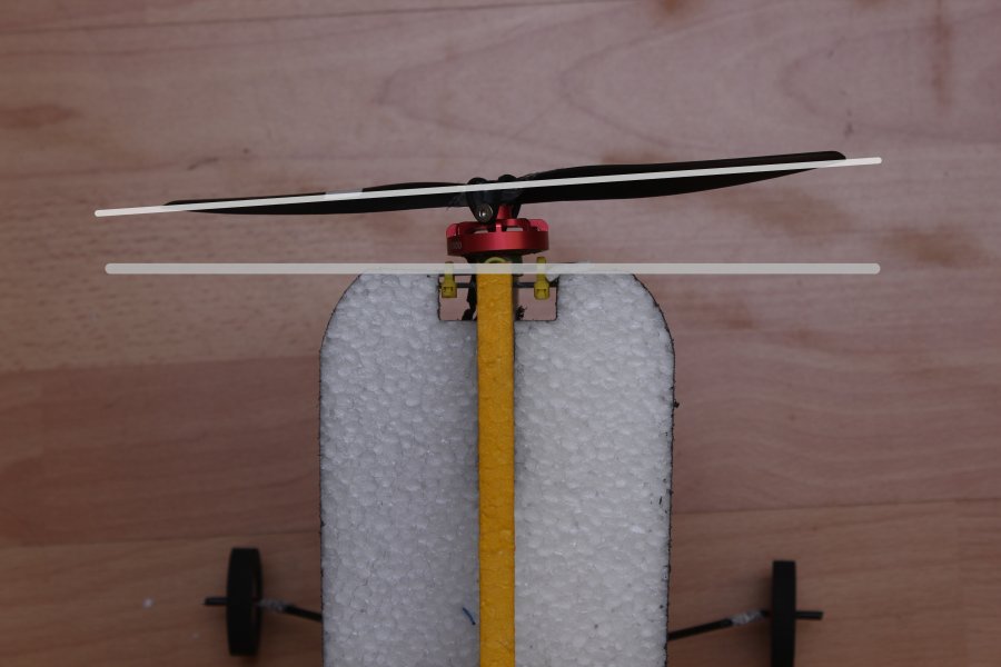 Linkes Bild: Motorsturz, der Motor soll etwa 2° nach unten Zeigen.