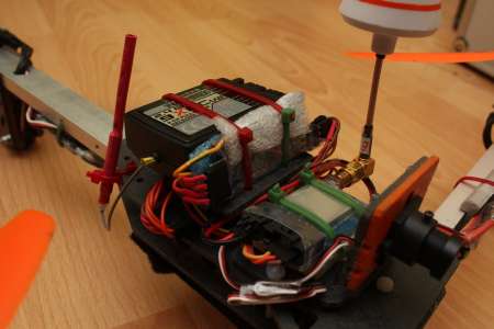 Minim OSD anzuschließen. Etwas versteckt hab ichs mit Kabelbinder eingepackt in Schaumstoff direkt neben den Receiver geklemmt.