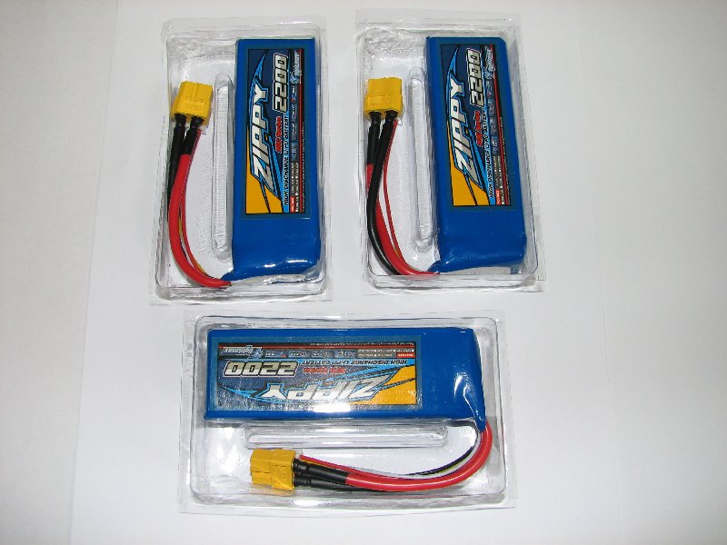 Ich hab mir insgesamt gleich drei 3S 2200mAh Lipos geholt, damit ich nicht nach 10 Minuten Flug direkt wieder einpacken muss.