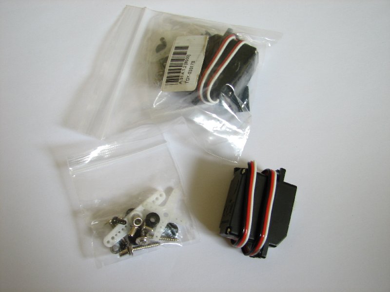 Das soll bei mir der Turnigy S3317B übernehmen. Der etwas Schwächere Servo soll später andere Funktionen haben (bewegen einer Kamera o.ä.).