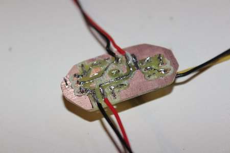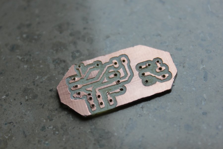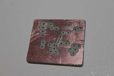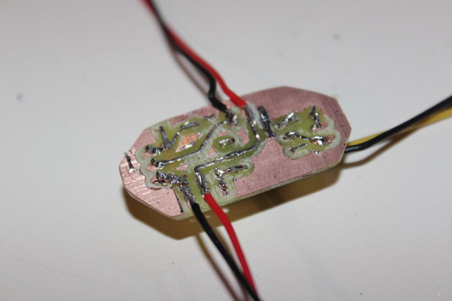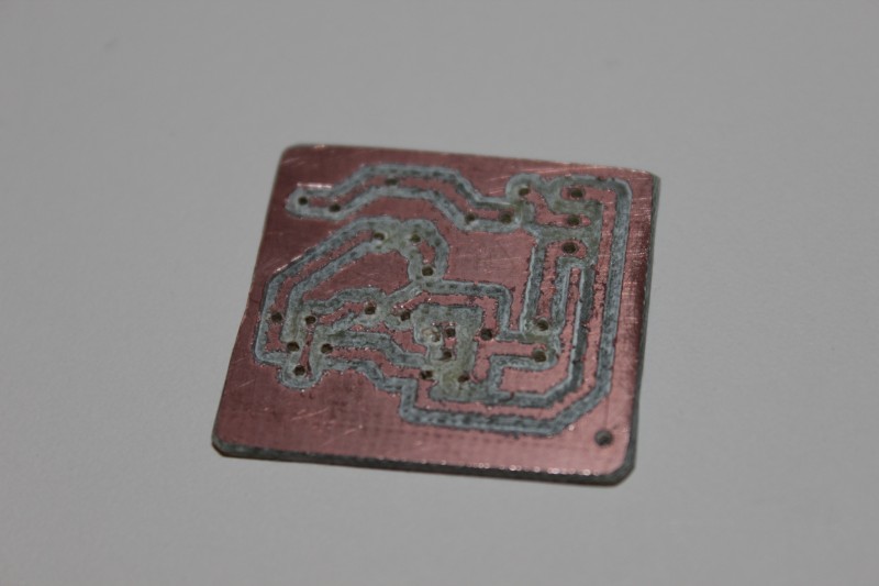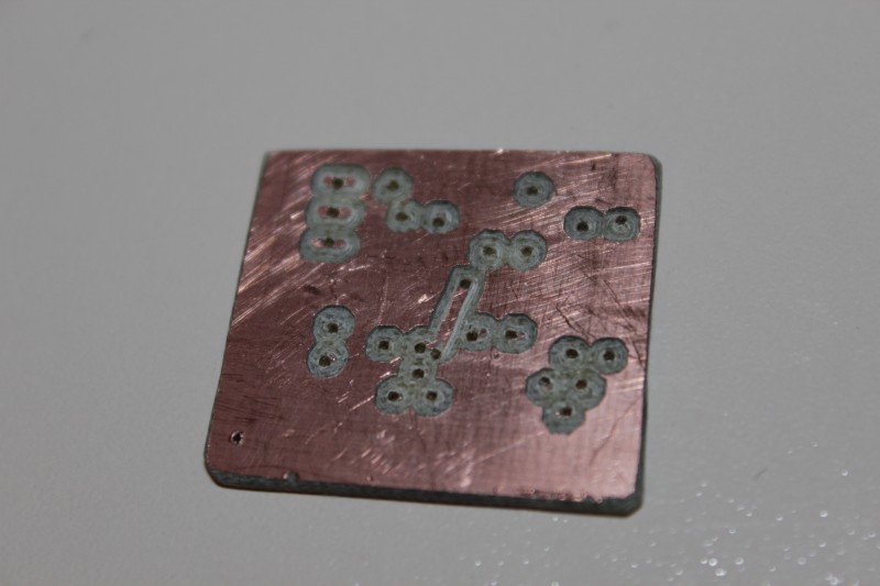 Die Platine hab ich mit der CNC gefräst. Leider lief das Fräsen nicht ganz so optimal, wesshalb es etwas nicht ganz so schön aussieht.