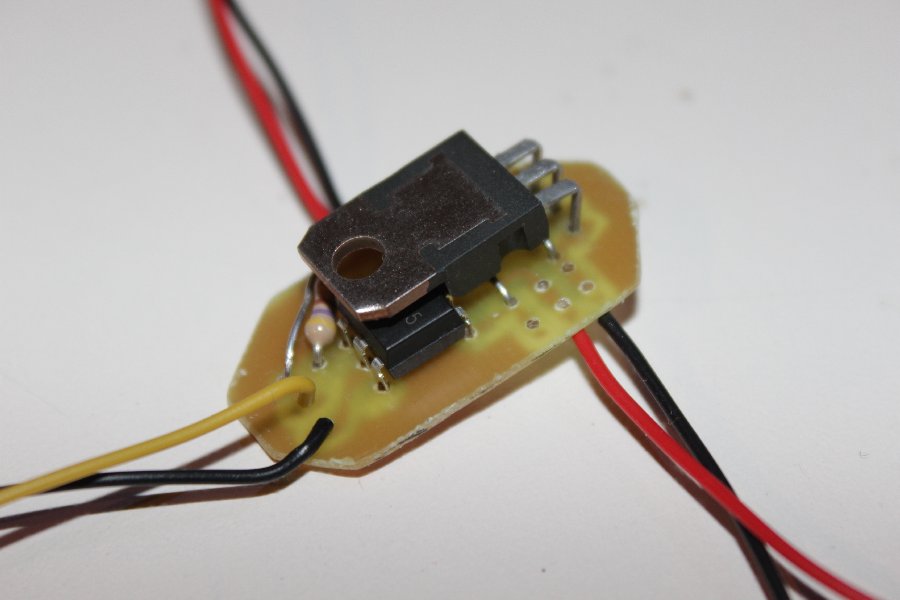 Die LED-Optokopplerplatine hab ich in etwas Tesafilm "professionel" verpackt und zwischen die Kabel gequetscht.