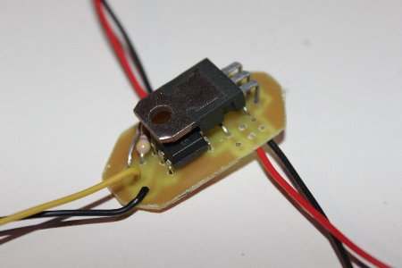 Ein zweipoliges Kabel (Im Schaltplan mit "In" bezeichnet) führt durch die obere Centerplate zur Verteilerplatine.