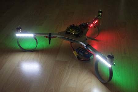 Um den Copter in der Luft besser zu erkennen brauchte er noch ein paar farbige LEDs.