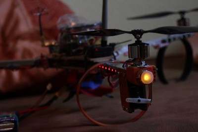 Da es mir mittlerweile schon mehrmals passiert ist, dass ich die roten LEDs an der Seite nicht erkennen konnte (z.B. wenn man genau von hinten draufguckt) brauchte ich eine LED, die man sieht wenn der Copter mit dem Rücken zu einem zeigt.