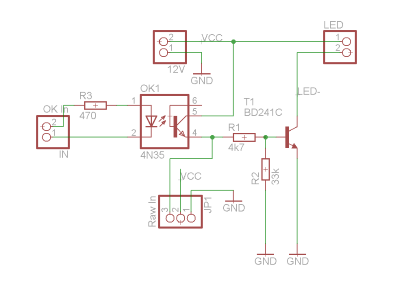 Damit die LEDs auch ein wenig leuchten, wenn die Status LED nicht an ist hab ich eine simple PWM parallel zum Optokoppler angeschlossen.