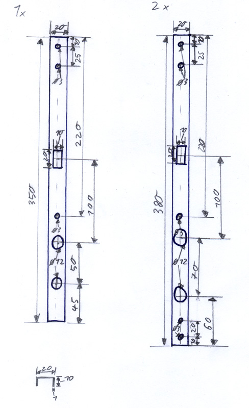 Hier meine Zeichnung der Arme mit allen Löchern für Kabeldurchführungen und Schrauben
