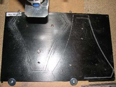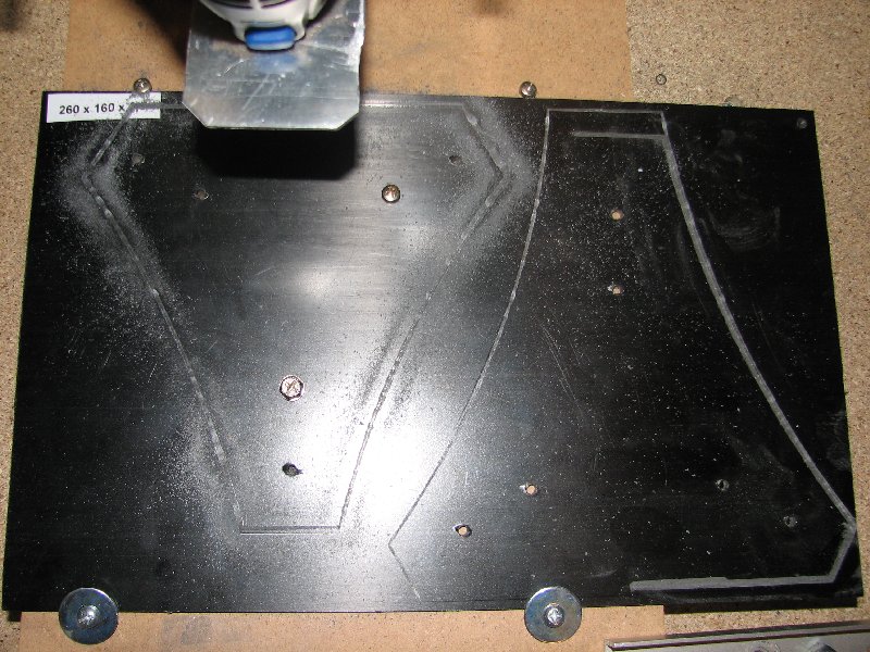Als Material für die Centerplate kaufte ich mir bei Ebay für etwa 7 € eine 260 x 160 x 2,3mm Kohlefaser (CFK) Platte. Diese sind leicht und extrem stabil und werden oft für Modelbauzwecke verwendet.