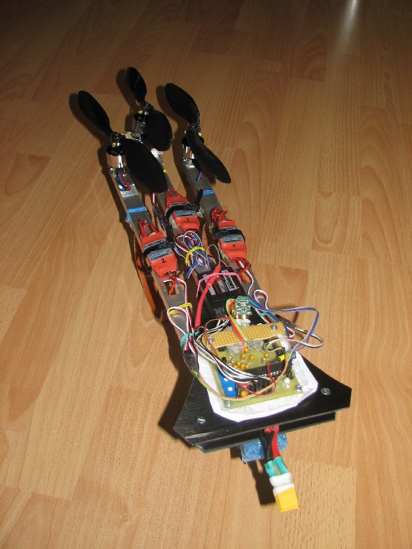 Den hinteren Arm des Prototypen hab ich übernommen, die vorderen beiden musste ich neu bauen, da ich die Motoren direkt auf den Aluprofilen anschrauben wollte.