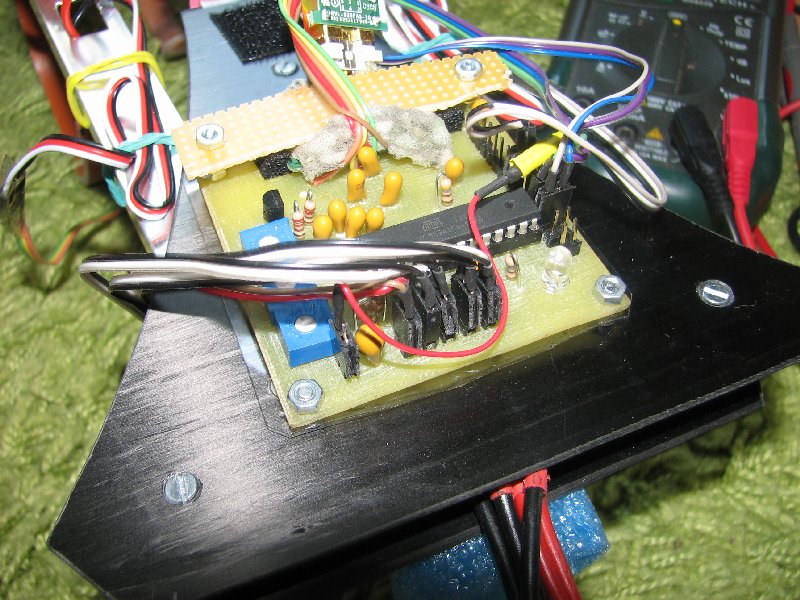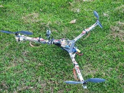 Zum Glück liefen alle Motoren, ESC's und sogar der KKMulticontroller noch. Lediglich die Centerplate aus Lochrasterplatine und der onboard Camcorder bekamen einiges ab.