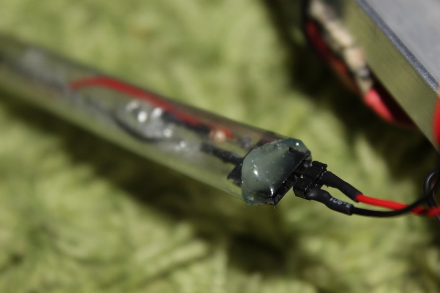 Auf beide Seiten eines Arms kommen jeweils zwei LED's, geschützt in einem durchsichtigen Schlauch.