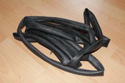 Also beim nächsten Fahrradladen gefragt und dort zwei Fahrradschläuche aus dem Müll mitgenommen (Günstiger gehts wohl kaum).