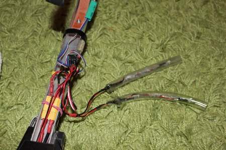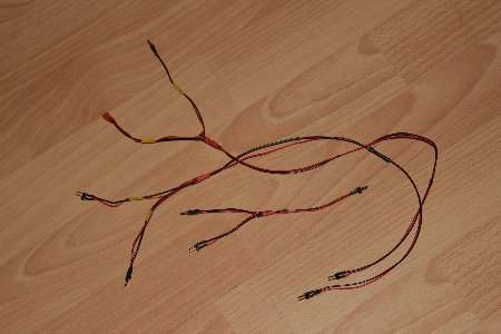 Im rechten Bild: Die 3 Kabel, welche vom "Adapter" zu den einzelnden Armen führen.