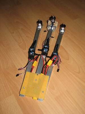 Hier zu sehen die restlichen zwei Arme mit fixierten Motoren.