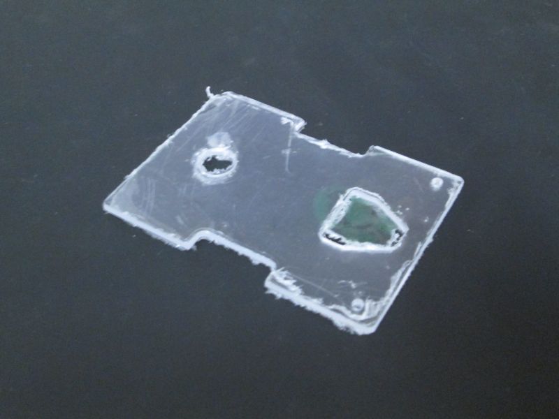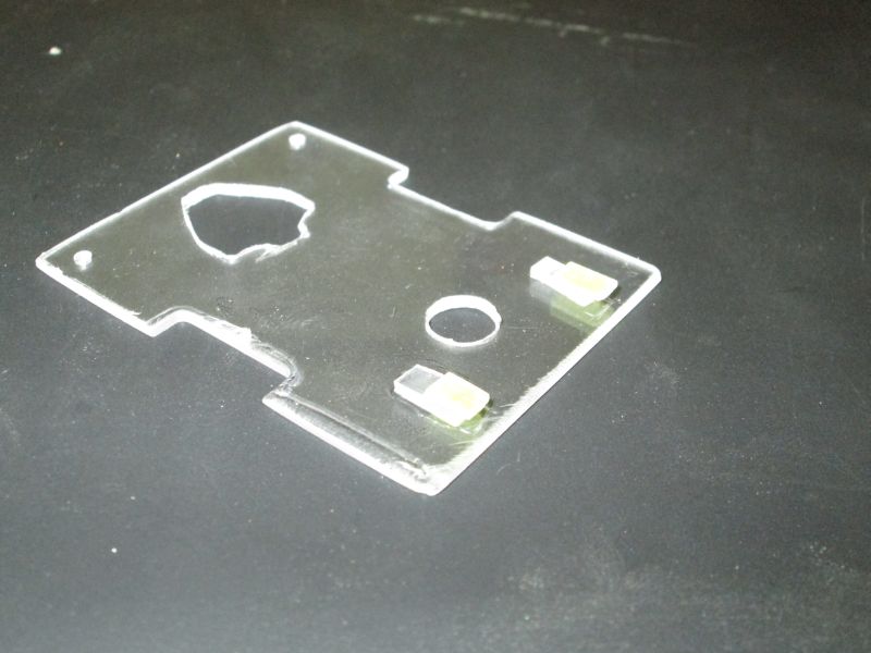 Oben auf das 3D-gedruckte Teil kommt noch eine kleine Plexiglasplatte. Diese ist mit etwas Heißklebe befestigt, damit sie bei bedarf irgendwann auch wieder abgenommen werden kann.
