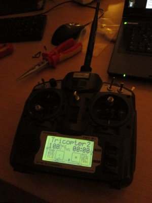 Langsam wurde es Zeit für ein besseres Funksystem. Im 2.4Ghz Segment hab ich bis jetzt nur positives von FrSky gehört. Da mein Turnigy 9x (FlySky) Modul reichweitentechnisch Probleme machte hab ich mir ein FrSKY DJT Modul und einen passenden D8R-II plus Empfänger von BRC Hobbies zugelegt. War etwas teurer als vom hobbychinesen, dafür aber aus England innerhalb von 3 Tagen da.