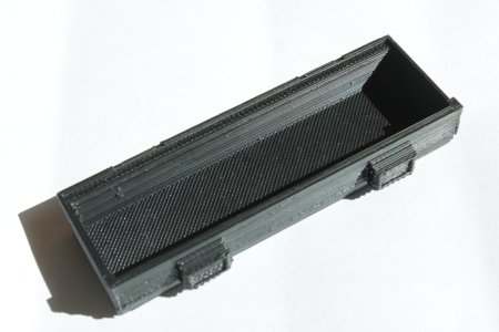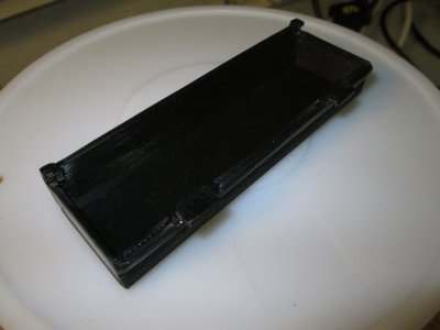 DXF: 20130910_turnigy9xmoduldeckel.dxf Oben halten ihn zwei Schrauben fest, unten wird er in zwei Schlitze geschoben. Am Deckel selber musste ich also noch zwei L-Stücke ankleben.