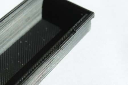 Der geübte Beobachter erkennt, es fehlen vorne die kleinen Clips. Diese sind beim Entfernen der notwendigen Stützen leider mit abgebrochen. Zudem ist das ABS beim Drucken an den hinteren Halteschlitzen etwas verlaufen (Einstellungen waren noch nicht ganz optimal).