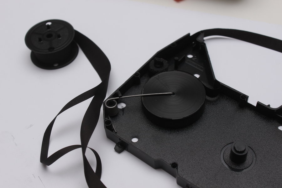 For this I bought a replacement ribbon for some random typewriter and cut an 8mm wide strip from it and glued it together to form a loop