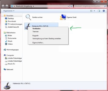 Die Wiimote weiterhin am Leben halten und mit einem Rechtsklick auf das Symbol