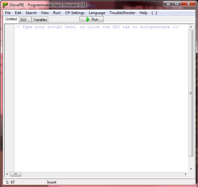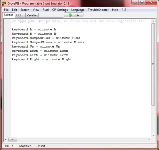 Jetzt starten wir GlovePIE und sehen folgendes: