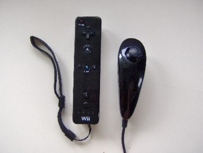 Also hab ich mir für 20€ eine Wiimote + Nunchuck bei Ebay geholt (siehe Bild rechts).