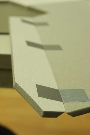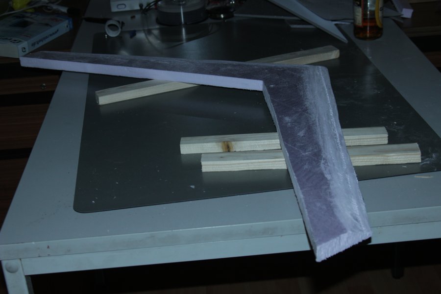 Das Domodur kommt auf das Saarpor und bildet die Tragfläche. Die Vorderkante hab ich mit einem Messer und Schleifpapier aus nicht nur optischen Gründen abgeschrägt.