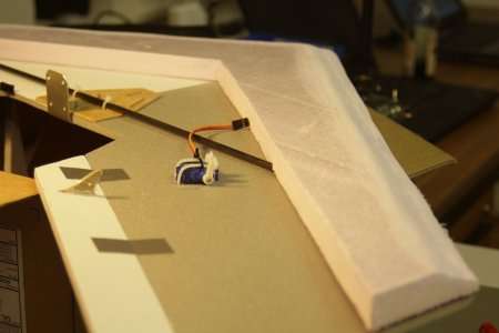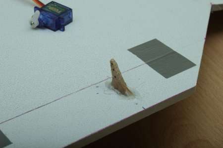 Die Servos wollte ich eigendlich zuerst in dem Domodur einlassen, allerdings währen mir dann die Stangen zu den Elevons zu lang geworden.