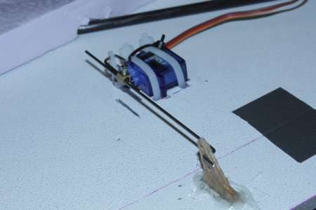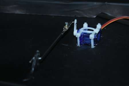 Servos wieder drauf. Diesmal musste ich sie mit etwas doppelseitigem Klebeband zusätzlich sichern.