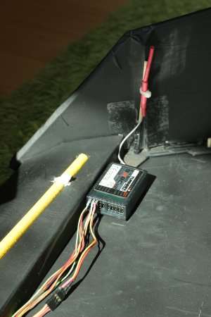 Der Lipo (aktuell ein 3S 2200 mAh) muss relativ weit nach vorne um den Schwerpunkt bei etwa 22cm (von der Spitze aus gemessen) zu halten.