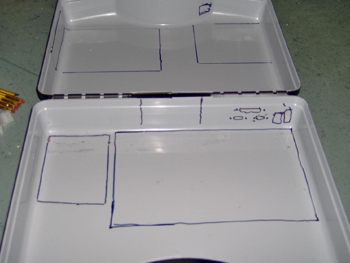 Als es trocken war hab´ ich aufgezeichnet was entfernt werden muss und wo später etwas eingebaut wird: