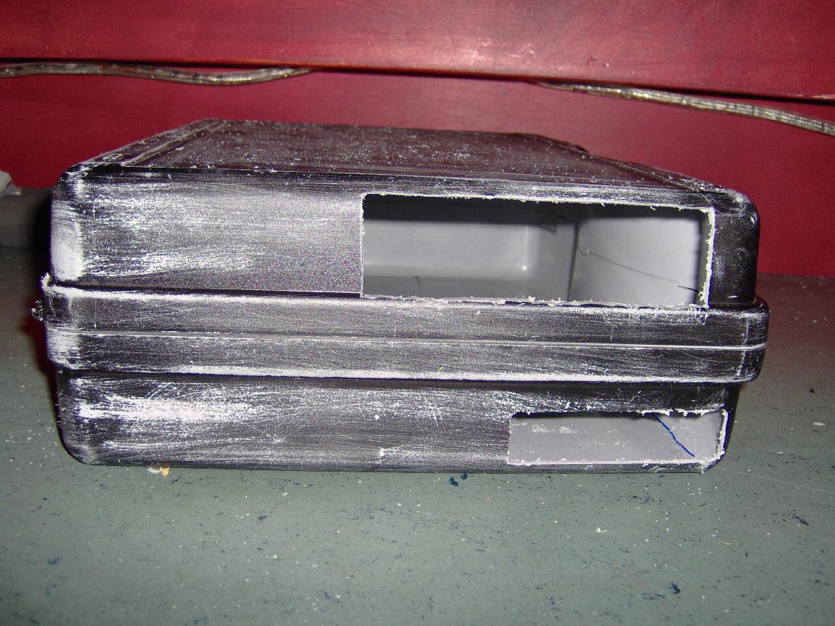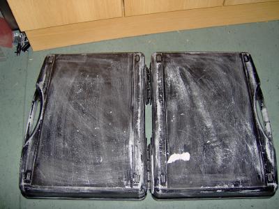 Nun hab ich nochmal den gespray´ten Koffer aufgeraut und danach wieder neu angespray´t, weil die Farbe nicht richtig hielt: