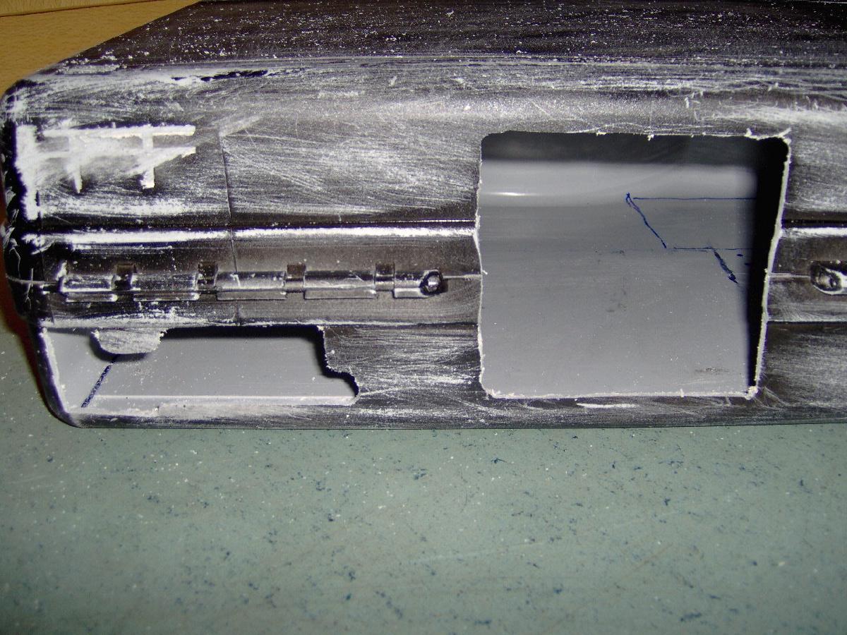 Hier sieht man den Koffer von der linken seite. Dort wird das dvd und das disketten laufwerk sein platz einnehmen.