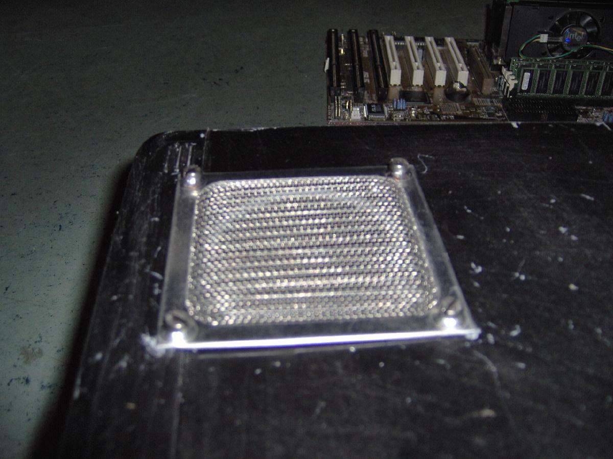 Dann hab ich noch einen kleinen Lüfter in nähe des cpu´s eingebaut und ein schutzgitter aus Aluminium dadrüber montiert: