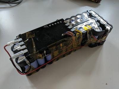 Hier das, was in einem üblichen Fahrradakku drin ist: 50 Stück 18650 LiIon als 10S (= 37V Nennspannung) verschaltet. Bei diesem war vermutlich das BMS defekt.