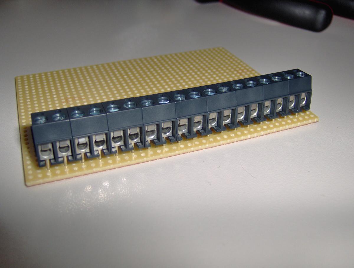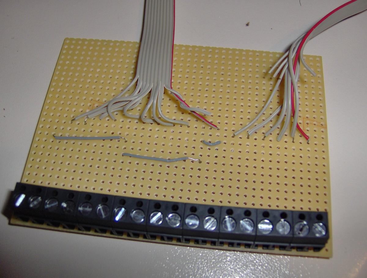 ich mich dazu überwunden, die 5 Ein- und 8 Ausgänge (+ einige Massen) auf einer Platine mit Schraubklemmen zu verbinden.
