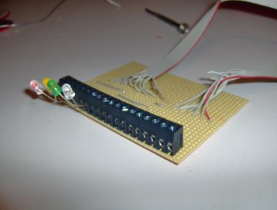 Nun können zum Test ein paar LEDs in die Ausgänge gesteckt werden