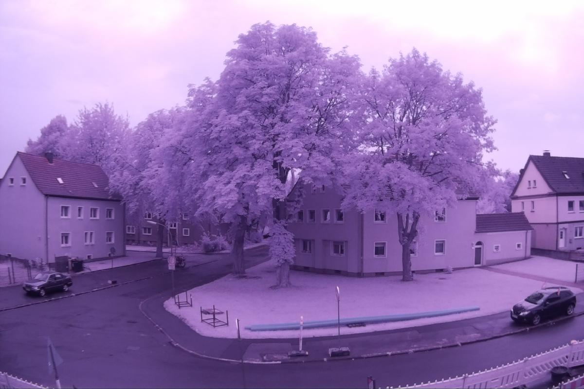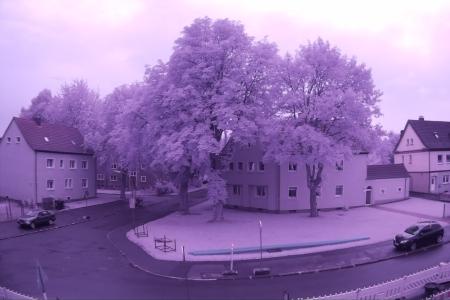 Ohne IR Filter trifft das nicht sichtbare IR Licht mit einer Wellenlänge zwischen 700nm und 1000nm auf den Sensor und wird vom Rotkanal aufgenommen. Folglich bekommt das Bild einen starken Rosastich und z.B. Blätter erscheinen hell Weiß, da sie das Infrarotlicht gut reflektieren.