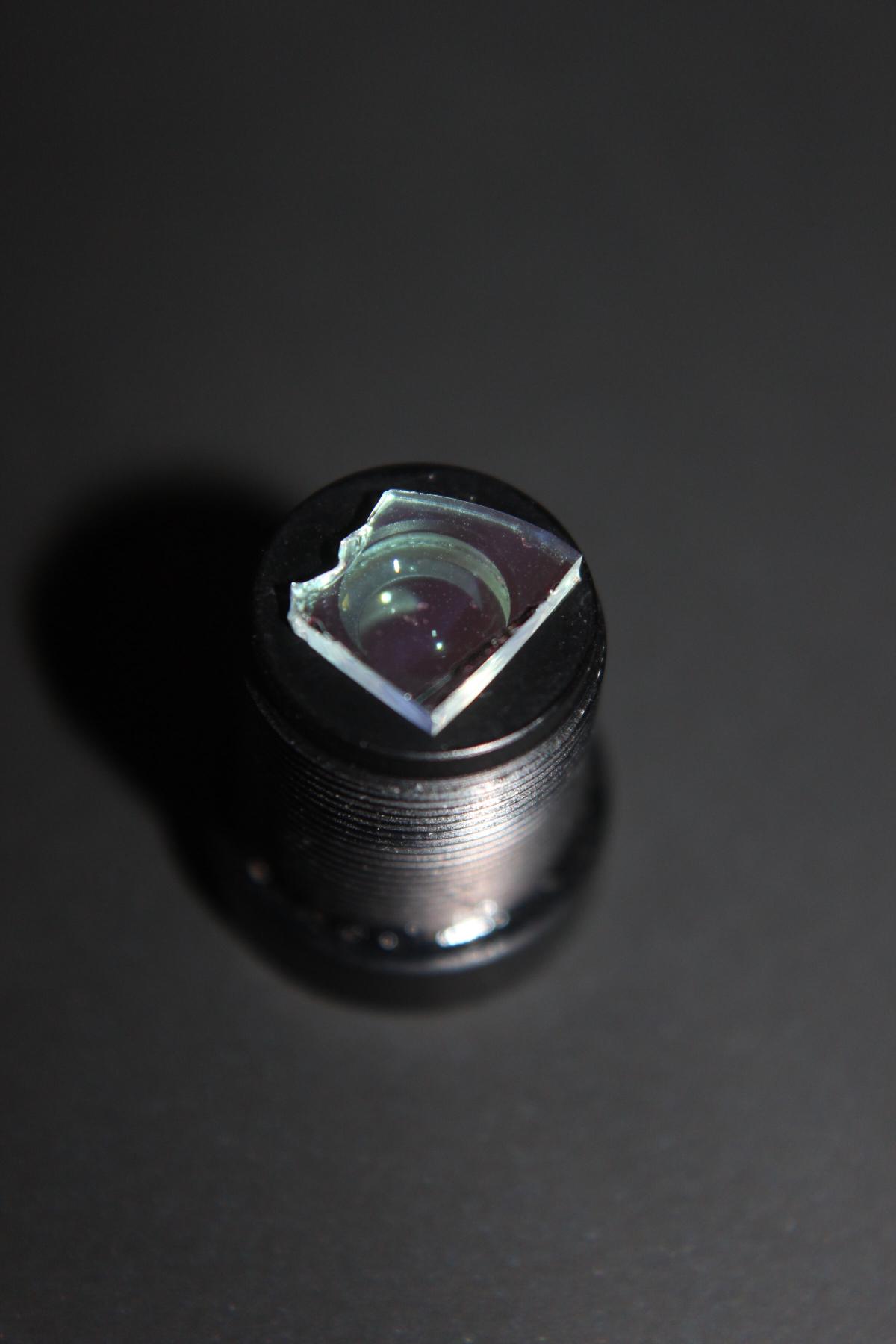Die Glassplatte hab ich mit zwei kleinen Tropfen Epoxydkleber an einer 3.6mm Linse angeklebt.